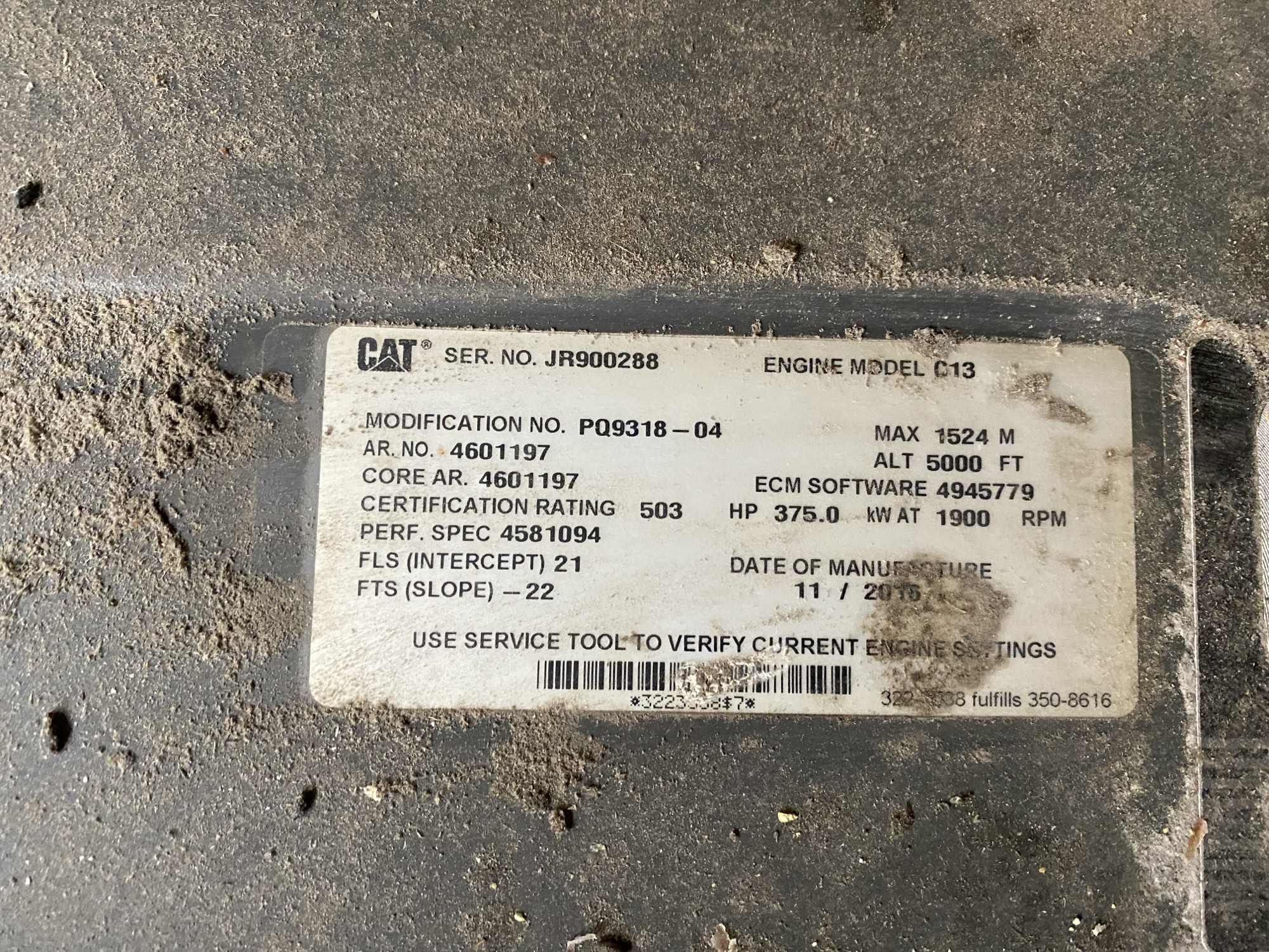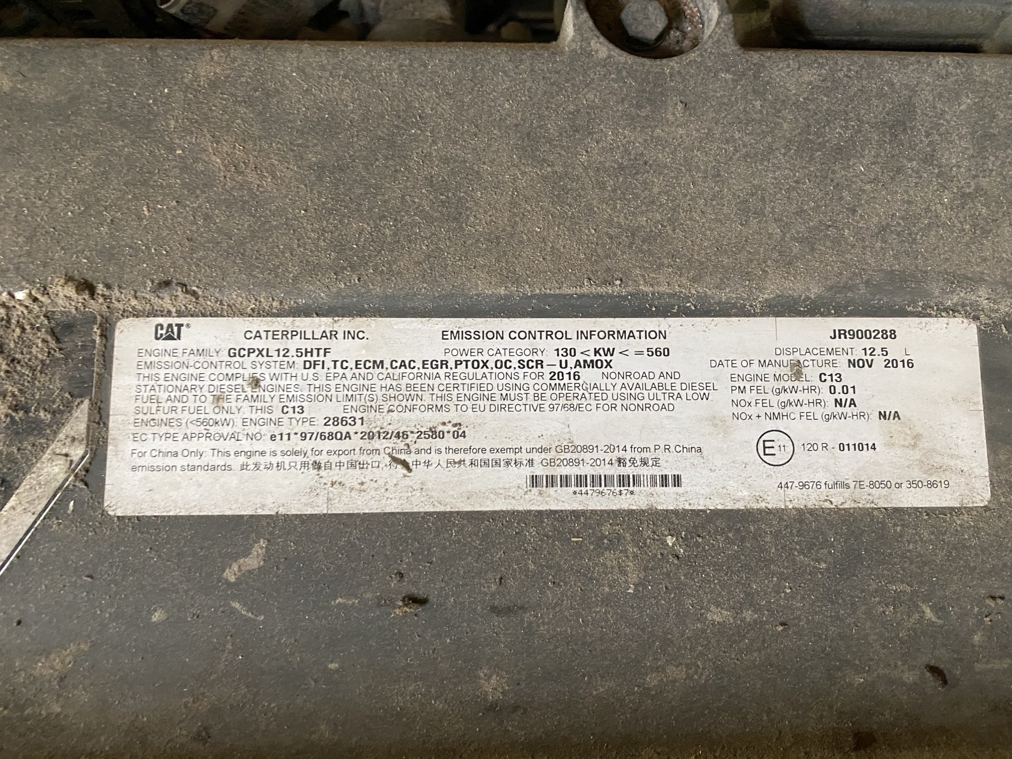 - *ENGINE 503 HP/375 KW CAT C13